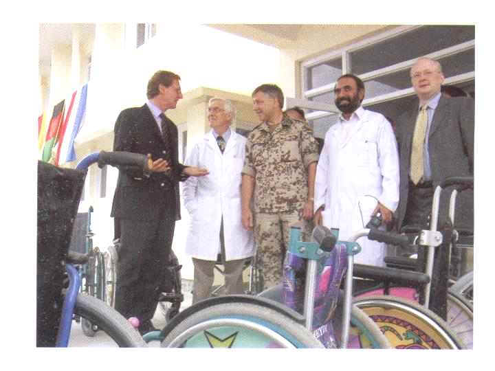 Representatives of the Afghan government and coalition authorities with Dr. Tim Fader and other hospital staff at the ceremony turning management of Hope Hospital over to the Afghan Health Consortium.